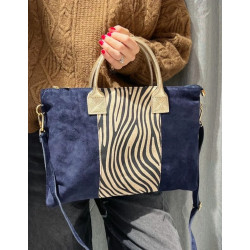 Découvrez notre sac à main/sac bandoulière en daim au motif zébré audacieux sur le devant.