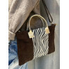 Découvrez notre sac à main/sac bandoulière en daim au motif zébré audacieux sur le devant.