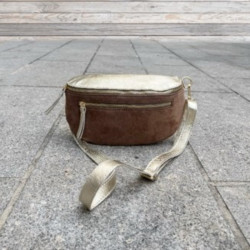 Sa façade en daim lui confère une texture douce et chic, tandis que le dos en cuir irisé doré ajoute une touche d'élégance qui ne passera pas inaperçue. Que ce soit pour une sortie décontractée ou une soirée élégante, ce sac banane est l'accessoire idéal pour compléter votre tenue.